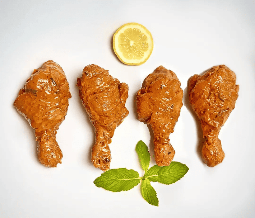 Tender tangri pieces soaked in a spicy, flavorful marinade for a delicious bite.