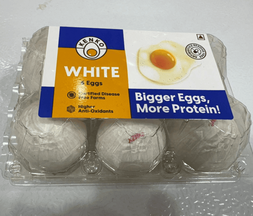 High-protein, hygienic white eggs from vegetarian-fed hens by Kenko.