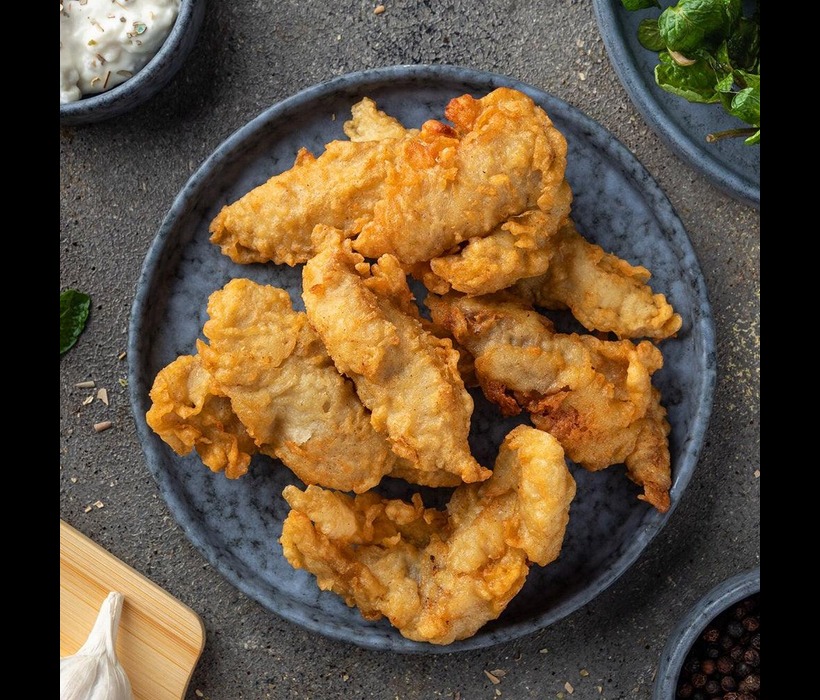 Tender chicken coated in a light, delivering a soft inside and perfectly crunchy outside.