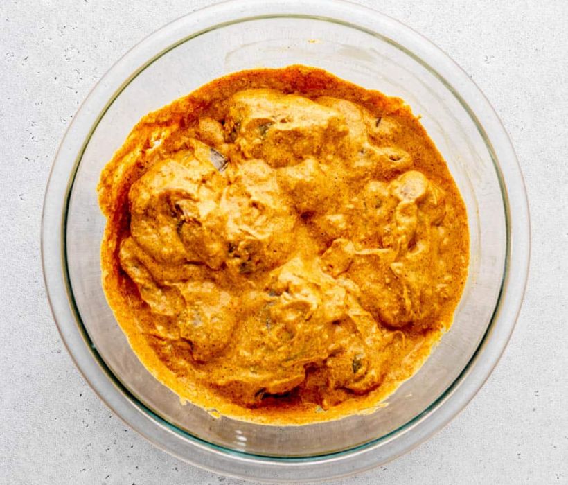 Tender chicken marinated in spices for a rich, flavorful curry.