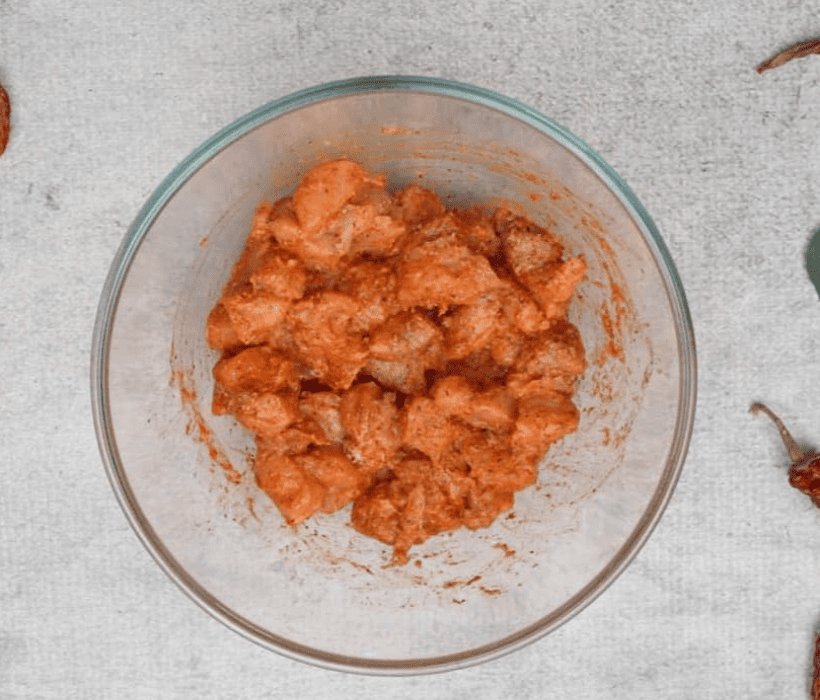 Tender chicken marinated in spices for a rich, flavorful curry.