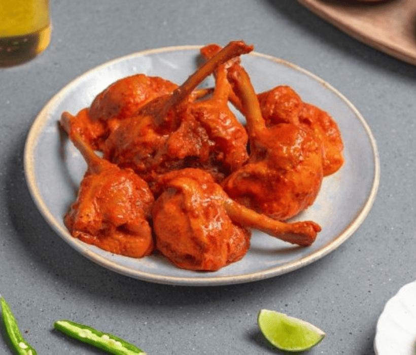 Tender tangri pieces soaked in a spicy, flavorful marinade for a delicious bite.